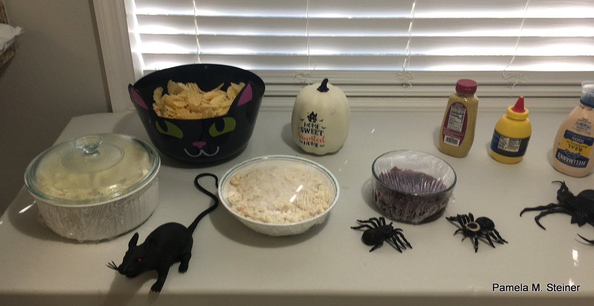 Speaking of spooky, Mommie went to a Ladies' Meeting at church yesterday and didn't take me with her! I wish she had because look at all the fun stuff they had to eat! She said they had a "spooktacular" time: